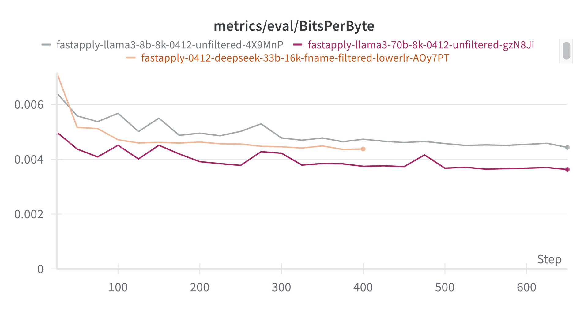 Knowledge Distillation - We'also like to distill the "fast apply" abilities of the current model into a smaller one, particularly llama-3-8b. The lower latencies from smaller models will matter more for larger files.