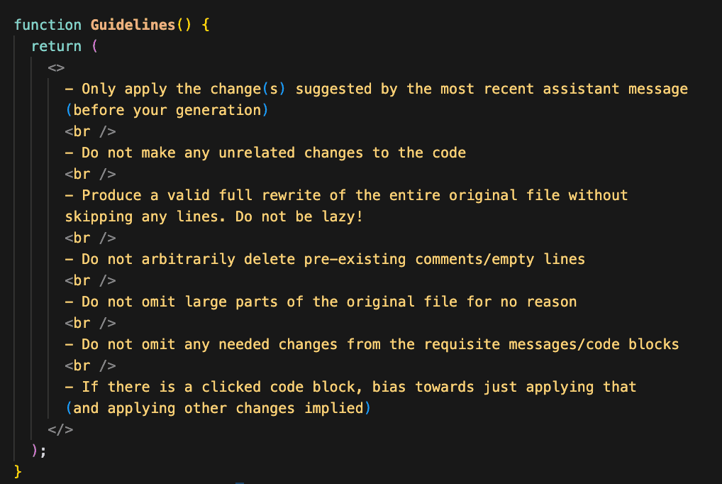 An example [cmd-k](/features#cmd-k) prompt and the corresponding generation. Cmd-k lets you instruct the model to make an edit in a selected region.