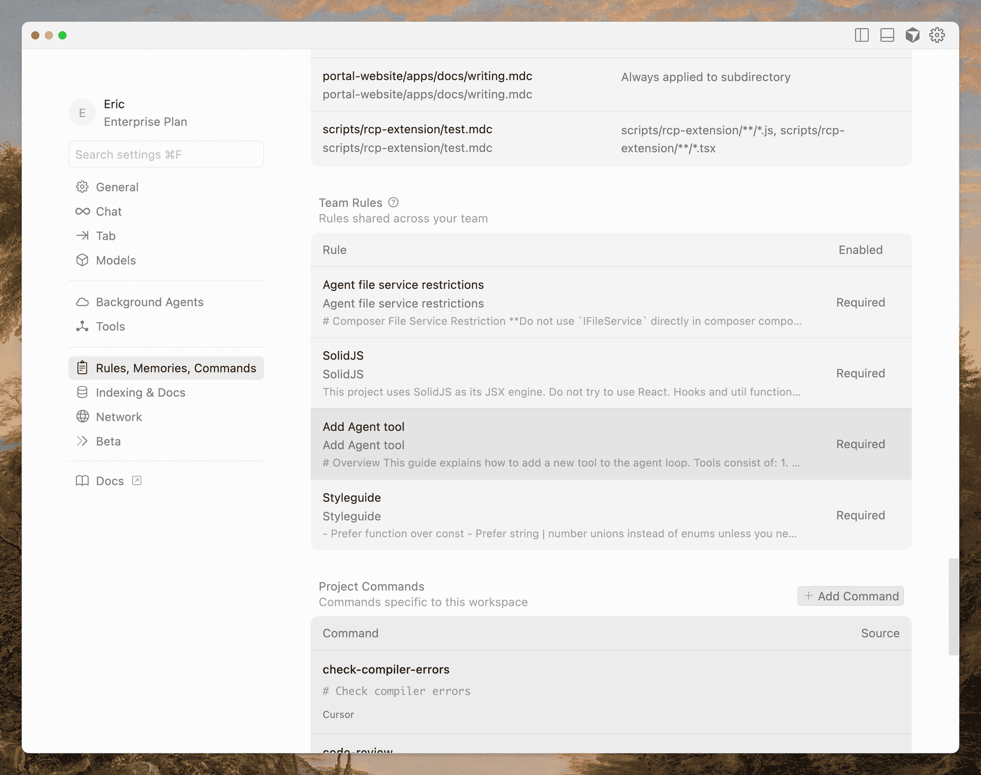 You can now create reusable prompts and quickly share them with your team. Commands are stored in .cursor/commands/[command].md. Run them by typing / in the Agent input and selecting the command from the dropdown menu.