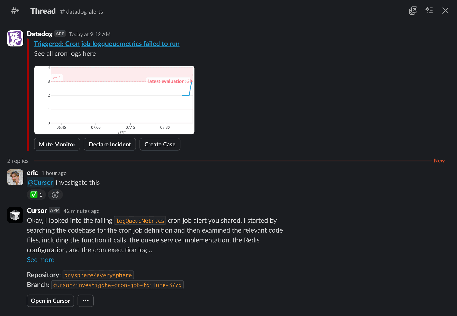 Cursor reads the entire Slack thread before starting, so Background Agents understand the full context when you reference previous discussions or issues.