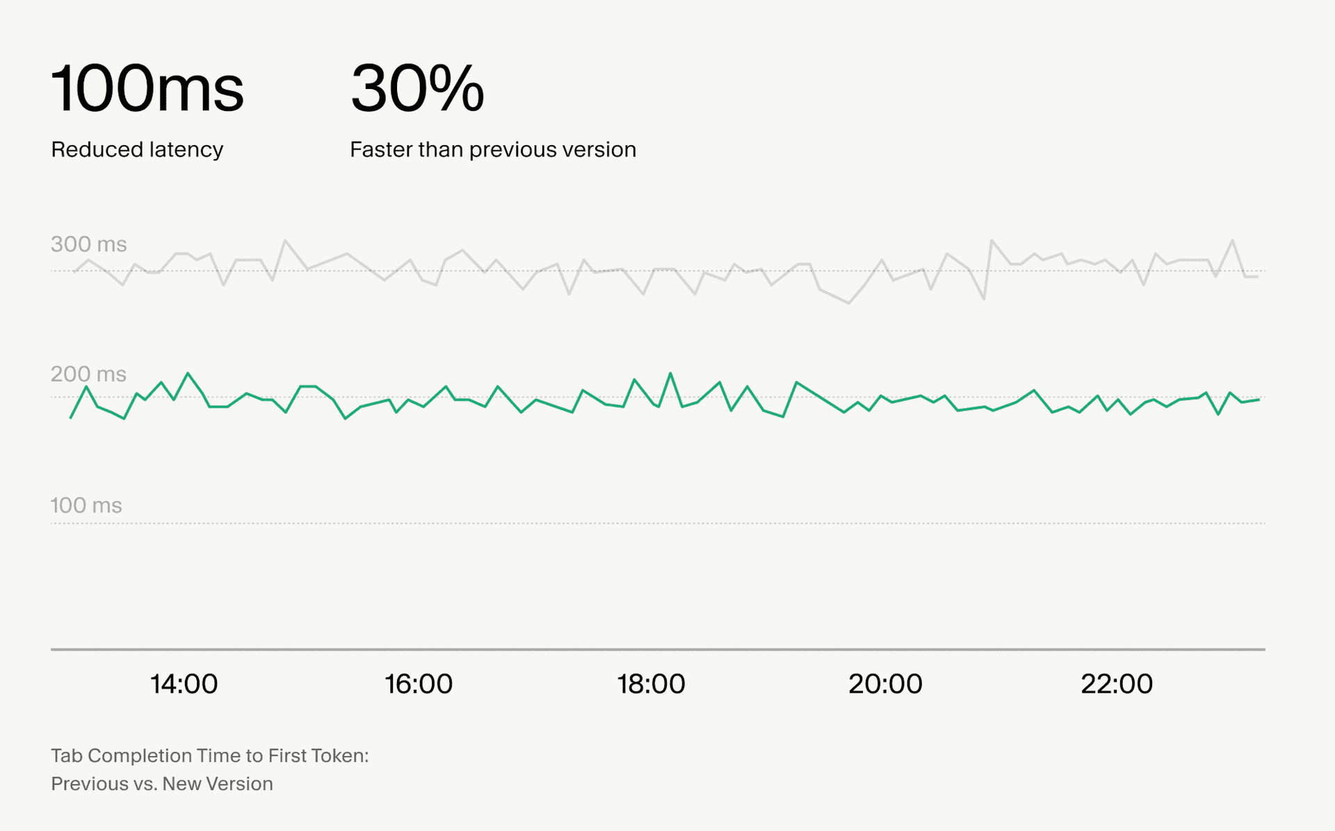Tab completions are now ~100ms faster, and TTFT has been reduced by 30%. We made this possible by restructuring our memory management system and optimizing data transfer pathways.